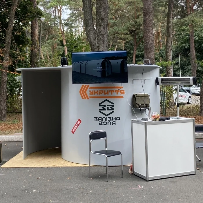 Укриття обладнане освітленням, місцями для сидіння. Комплектація може змінюватися, залежно від потреб Замовника.